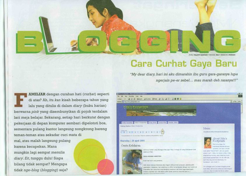 - July 2, 2004, BELIA (suplemen Pikiran Rakyat): Diary Online Bernama Blog
